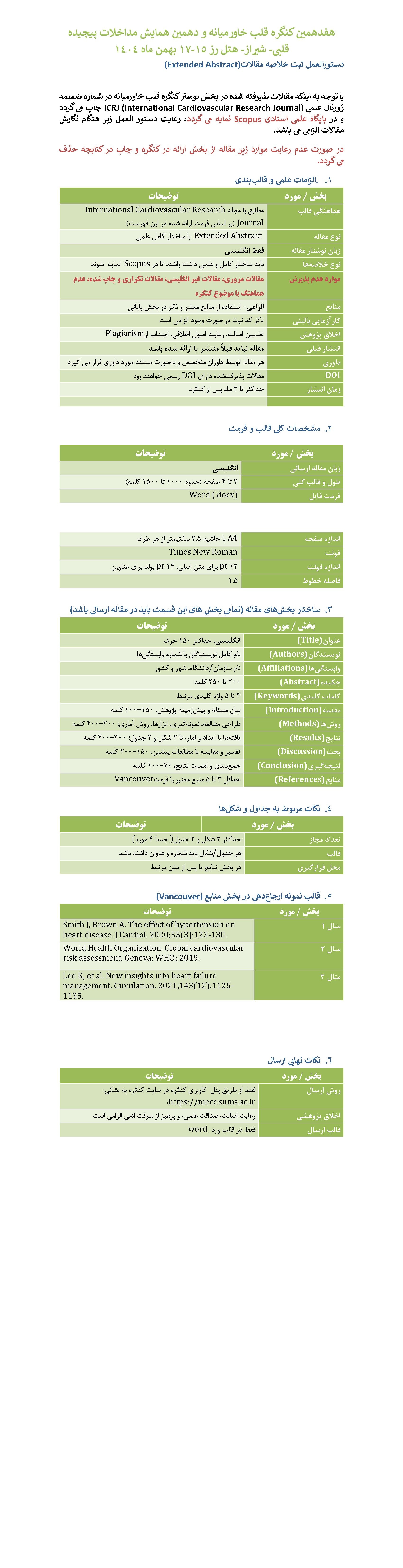 پایان پذیرش خلاصه مقالات: 11 دی ماه 1404 (Jan 1 2026)
